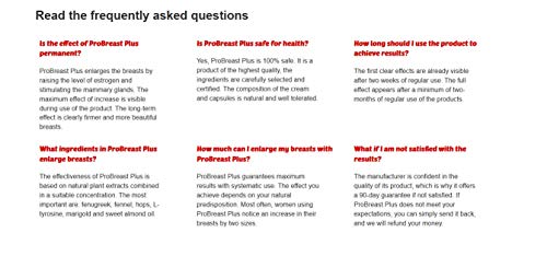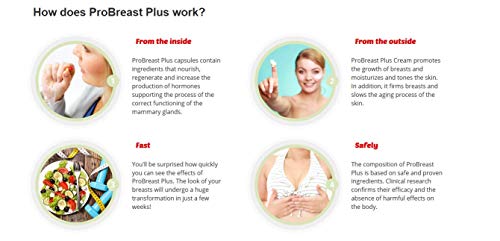ProBreast Plus is een set van twee producten ontworpen voor vrouwen die de vorm en grootte van hun buste willen verbeteren. De set bevat een voedingssupplement en crème, die het lichaam synergetisch ondersteunen. ProBreast Plus is een uitstekend alternatief voor dure plastische chirurgie. De samenstelling bevat alleen natuurlijke ingrediënten die rijk zijn aan fyto-oestrogenen en flavonoïden.